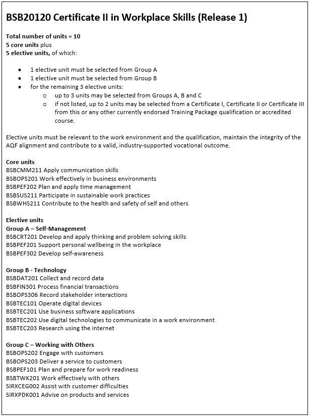 • BSB20120 Certificate II in Workplace Skills