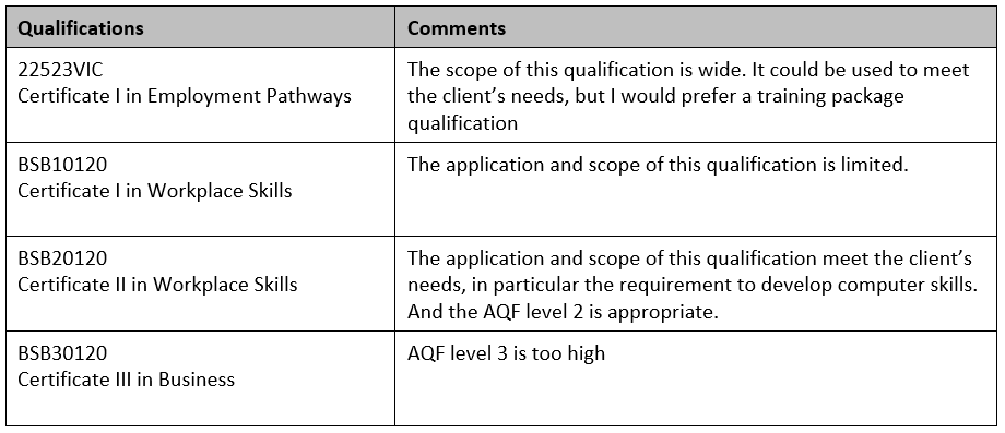 The above draft training and assessment strategy is incomplete. However, for the purpose of this article, it gives a clear example about how a training program can be designed to meet a client’s need.