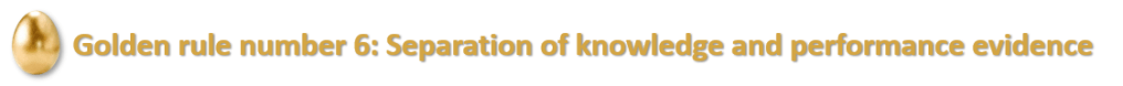 - Keep the assessment task to gather knowledge evidence separate from assessment tasks that gather performance evidence
