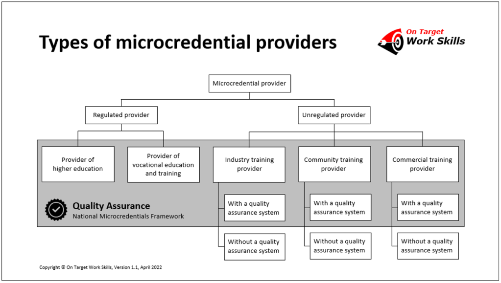 - Providers of industry training (some are industry associations, others can be affiliated with an industry associations, and others may align their microcredentials to industry standards)