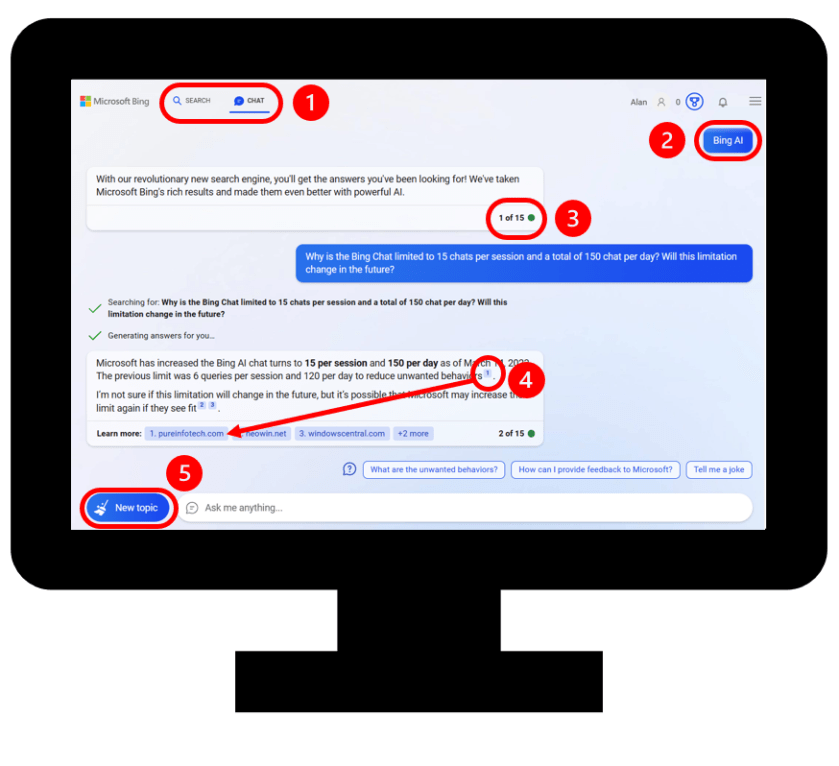 Currently, the Bing Chat allows up to 15 chat items per session and a total of 150 chat items per day. These restrictions may change over time. Microsoft introduced these restrictions for Bing Chat because long sessions can ‘confuse’ the program’s computing model and produce uneven or inappropriate responses.