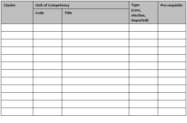 I often use clustering to organise the units of competency. This technique makes it easier for trainers to implement and easier for learners to understand the training program structure. A short descriptive title for the cluster can be used instead of using unit codes and titles that many learners can find confusing, especially at the commencement of the training program.