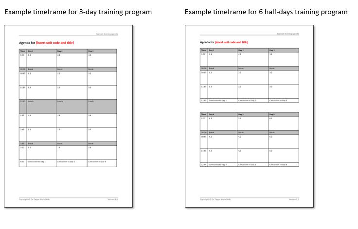 The above two examples show how very few details are provided on the training agenda. It is only meant to be an outline.