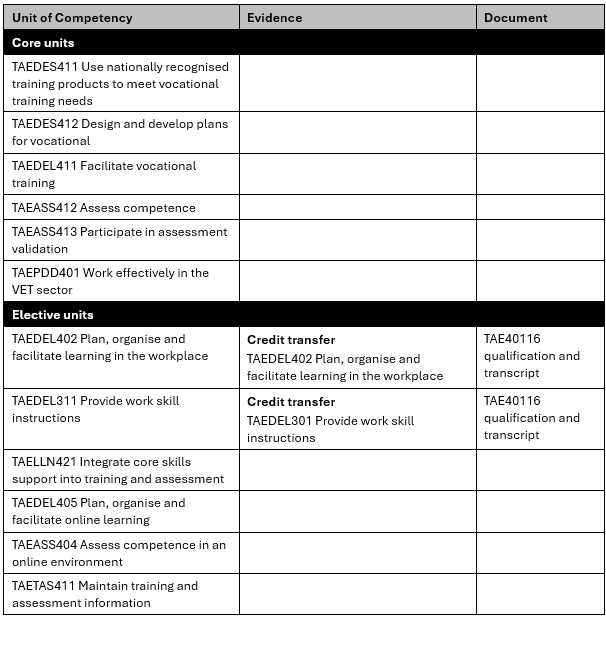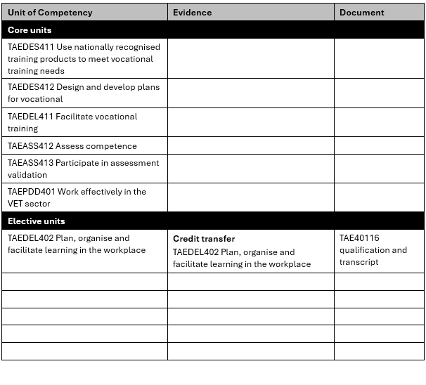 - Select elective units with the least amount of evidence required to demonstrate your competence.