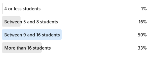 During the first week of May 2025, I conducted a LinkedIn poll asking people who work for a TAFE or other types of RTO the following question, “What is the typical size of a group of learners?”