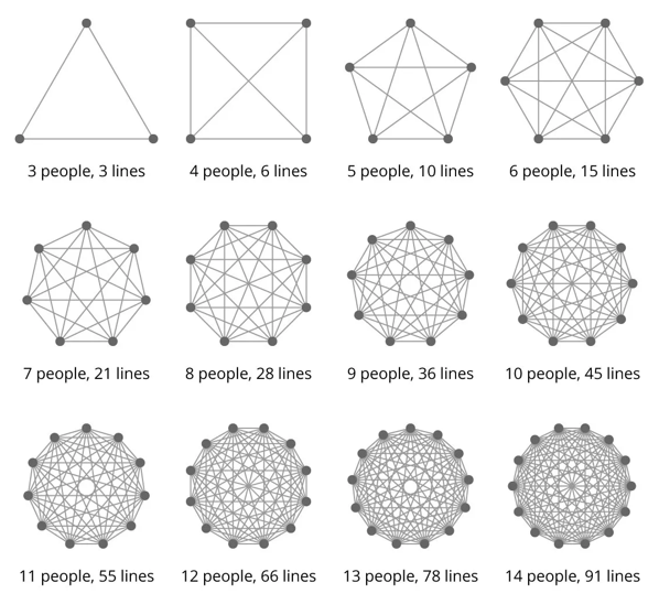 The greater number of people, the greater number of lines of communication. And the greater number of lines of communication, the greater the communication complexity.