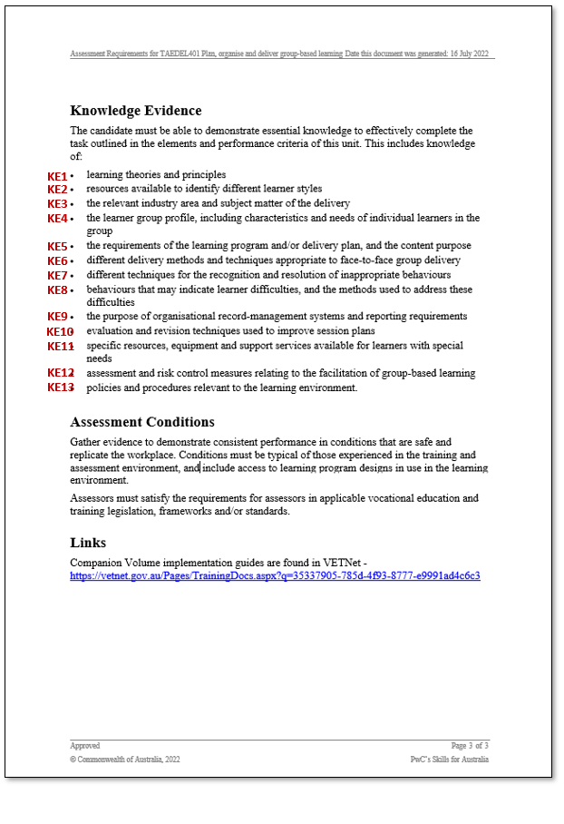 [1] 2012 Standards for Training Packages (last updated in 2022)