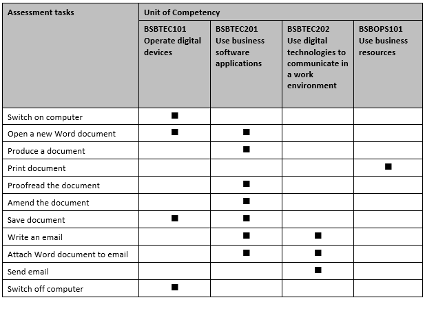 The following is an example of an assessment task that can be used to gather evidence for four different units of competency.